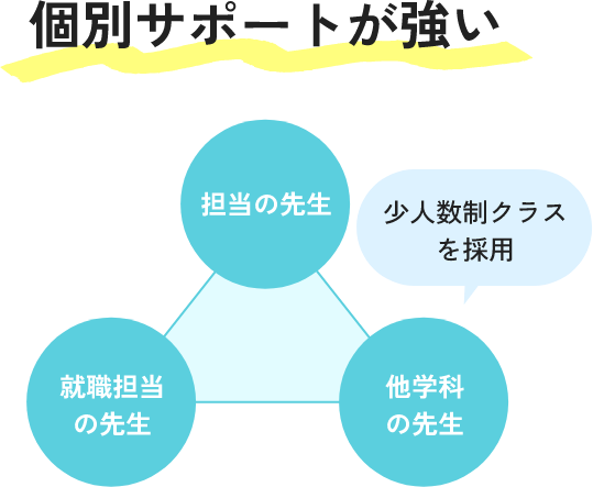 それぞれの理解度にあわせて実務経験が豊富な先生が休み時間や放課後も丁寧に個別フォローを行います。