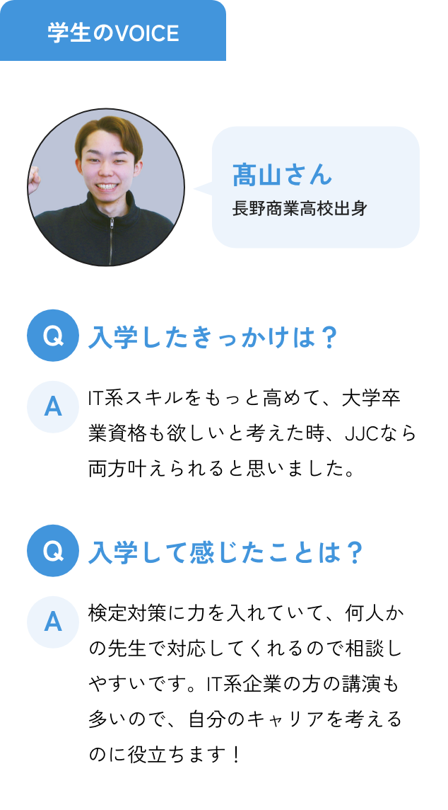 上越公務員・情報ビジネス専門学校(JJC)は、新潟県上越市で唯一のビジネス総合学校として、創立38年目を迎える伝統校です。